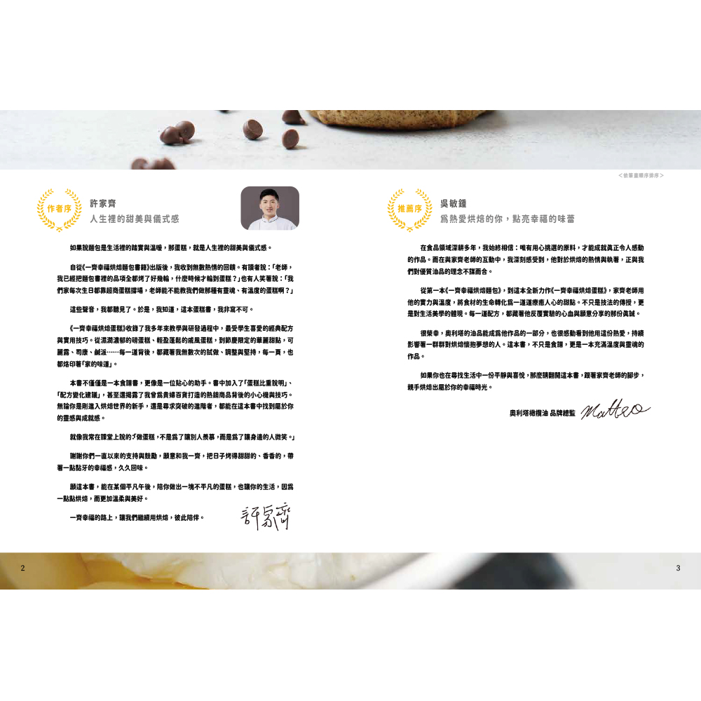 翻開《一齊幸福烘焙蛋糕》,許家齊老師溫柔紮實的教學引導,帶領讀者深品每款糕點的故事與靈魂。無論是初入門的甜點同好、或是職人級高手,希望這本書都能成為您烘焙旅程中溫暖的陪伴。
