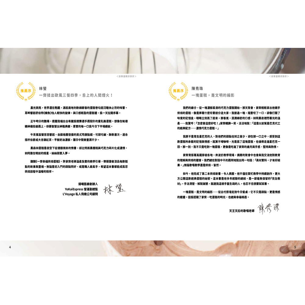 就像我常在課堂上說的:「做蛋糕,不是為了讓別人羨慕,而是為了讓身邊的人微笑。」謝謝你們一直以來的支持與鼓勵,願意和我一齊,把日子烤得甜甜的、香香的,帶著一點黏牙的幸福感,久久回味。願這本書,能在某個平凡午後,陪你做出一塊不平凡的蛋糕,也讓你的生活,因為一點點烘焙,而更加溫柔與美好。