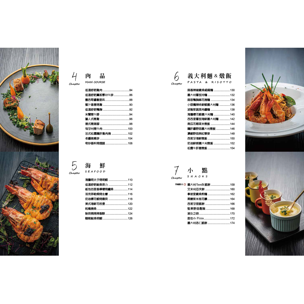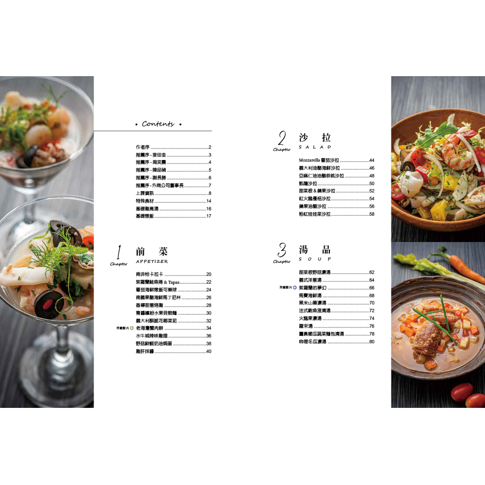 以簡單的食材與容易上手的烹調方式,在家也能輕鬆打造溫馨又具質感的西式餐桌。從前菜、主食到甜點,每一道料理都蘊含著細膩的用心與家的味道。透過慢慢準備、用心擺盤,不僅能享受烹飪的樂趣,也讓日常的餐桌增添一份儀式感。當家人與朋友圍坐一起,分享美味、交談歡笑,那份被食物與陪伴包圍的幸福,就是生活中最珍貴的時光。書中涵蓋前菜、沙拉、湯品、肉品、海鮮、義大利麵&燉飯、小點,讓您從前菜一路吃到點心,義式的好味道在家也能完美複刻!