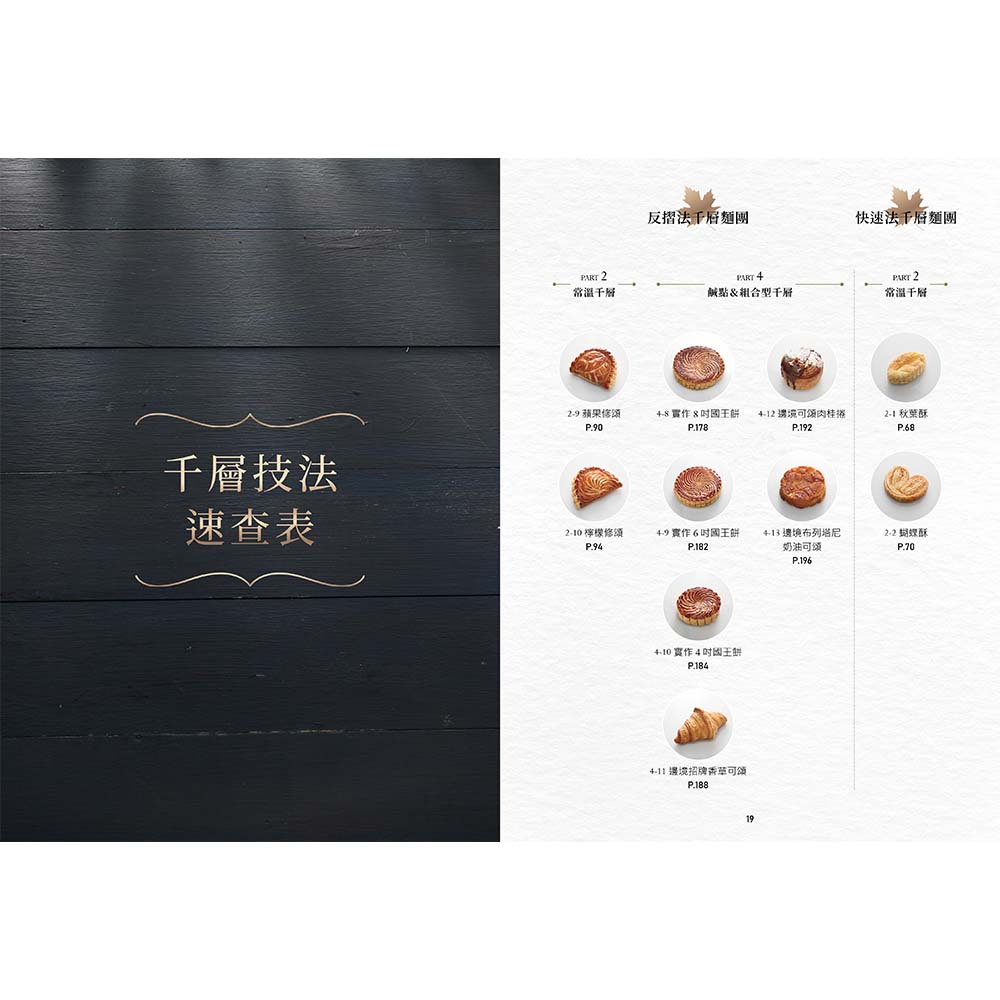 這是一本給新手,同時也給甜點師傅使用的工具書。書中介紹了數種製作千層的方法與摺疊方式,就是為了大量比較與展示介紹,新手可以找到自己的出發點;資深師傅可以找到適合自己產品的千層酥皮,剖析各類食材在千層中扮演的角色設定(Know how),讓師傅可以為理想的千層做微調與重新定位。