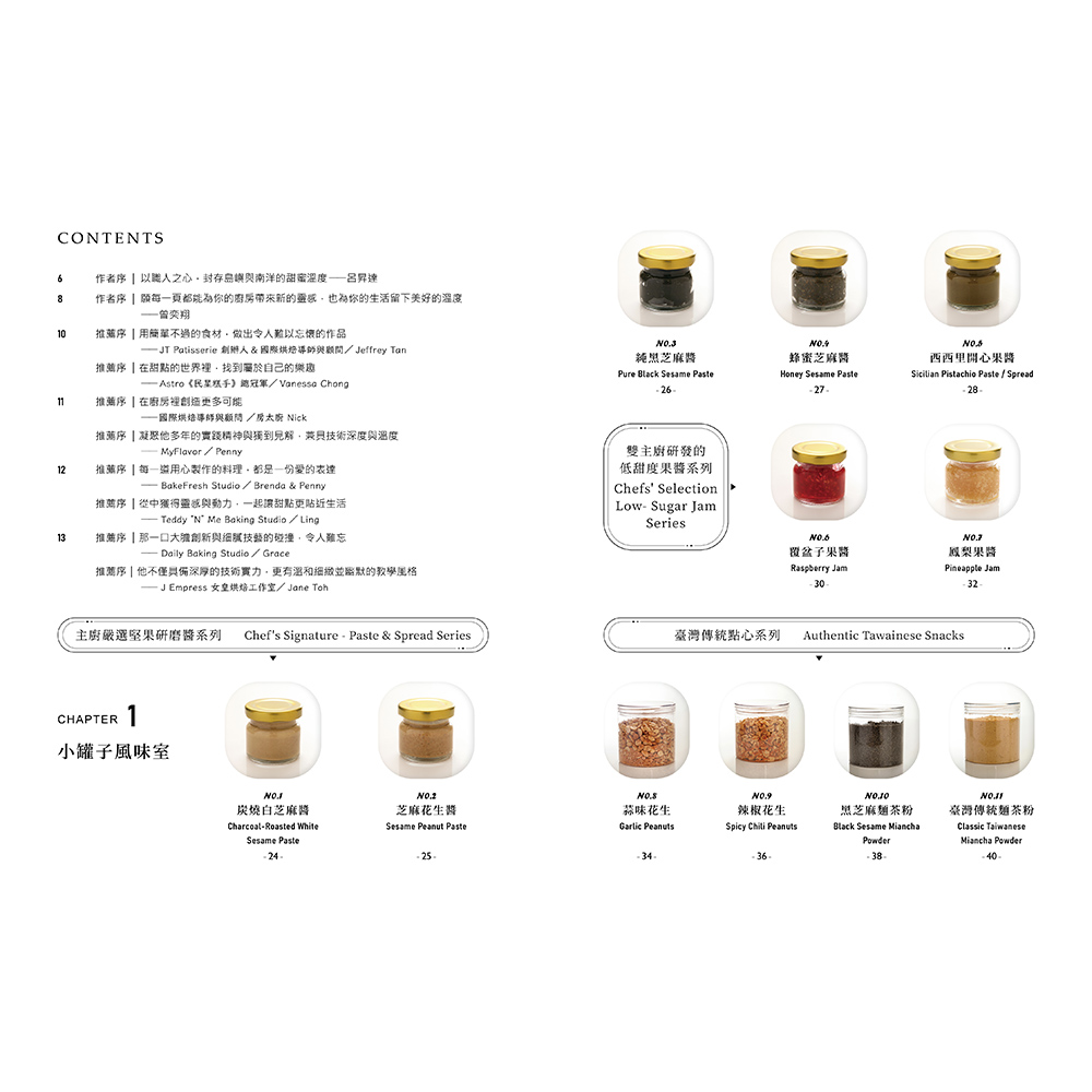 從麵茶花生的復古香氣,到椰香斑斕的南洋甜味,本書以6款經典臺味零嘴與28款異國南洋風點心,帶你走進兩地職人的風味日常。無論是水果醬、堅果研磨醬、脆香小點,還是節慶必備的黃梨卷、邦吉餅乾與小塔,每一道都被設計成「簡單做、好攜帶、能分享」的甜點形式。