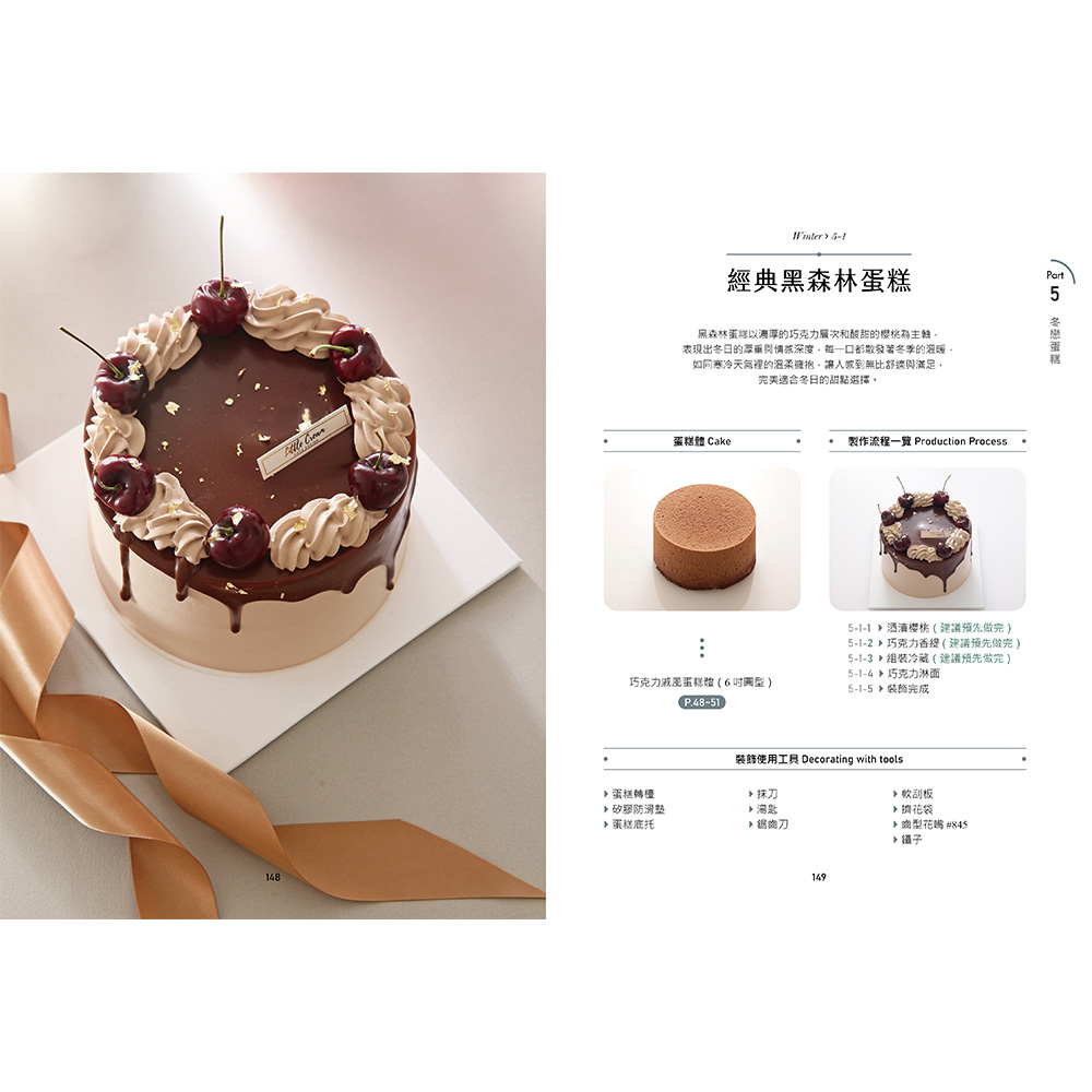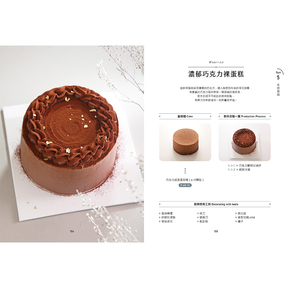書中包含大量清楚的工具選用&材料標示,詳細介紹每顆蛋糕所需的必備工具、材料以及應用技巧。無論是精緻的巧克力飾片製作,還是精巧的鮮奶油抹面,每一個步驟都配有圖文並茂的指導,輕鬆掌握蛋糕裝飾的核心技藝。