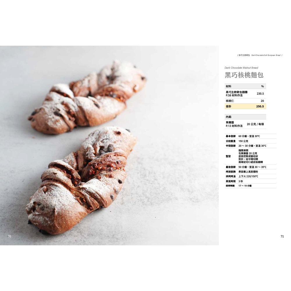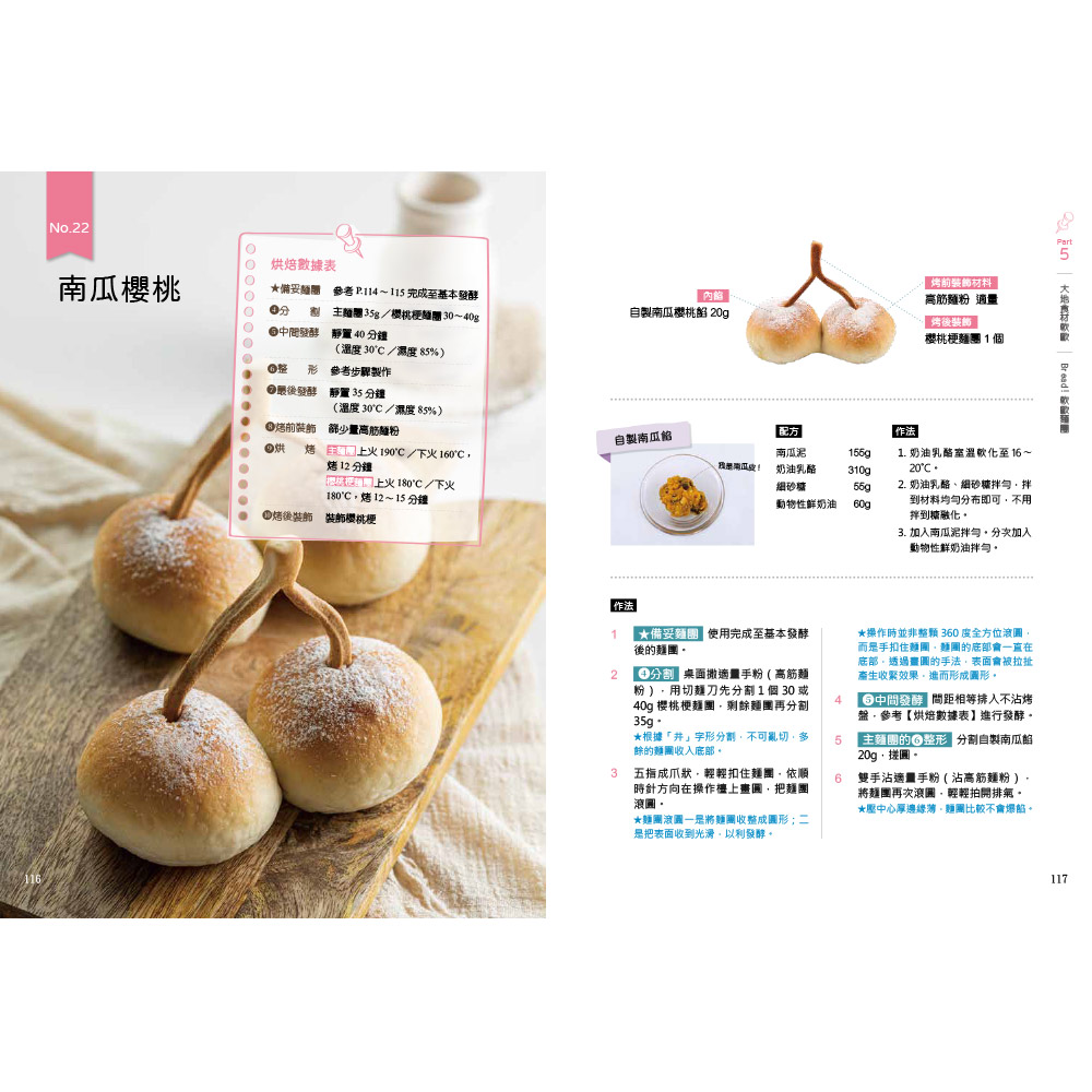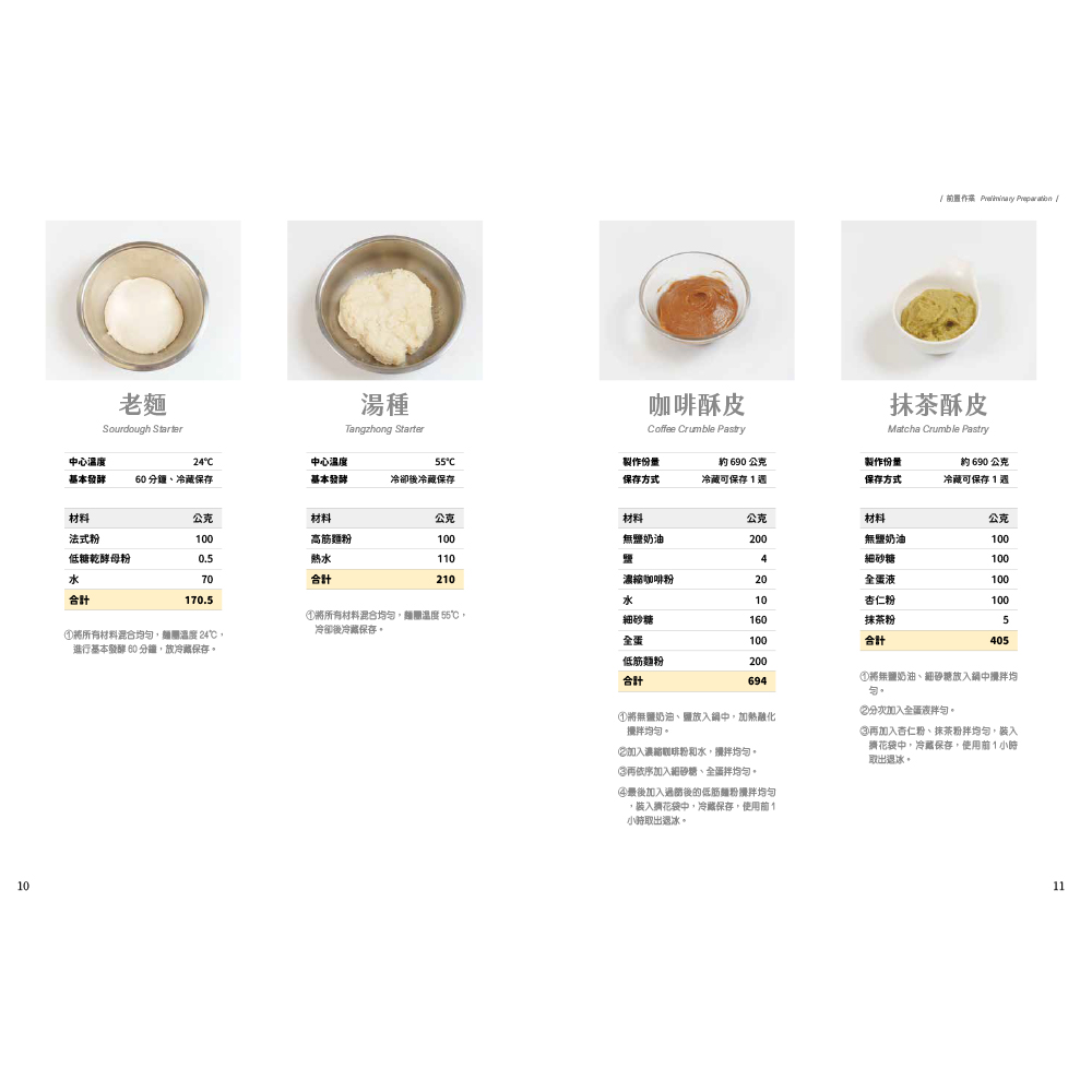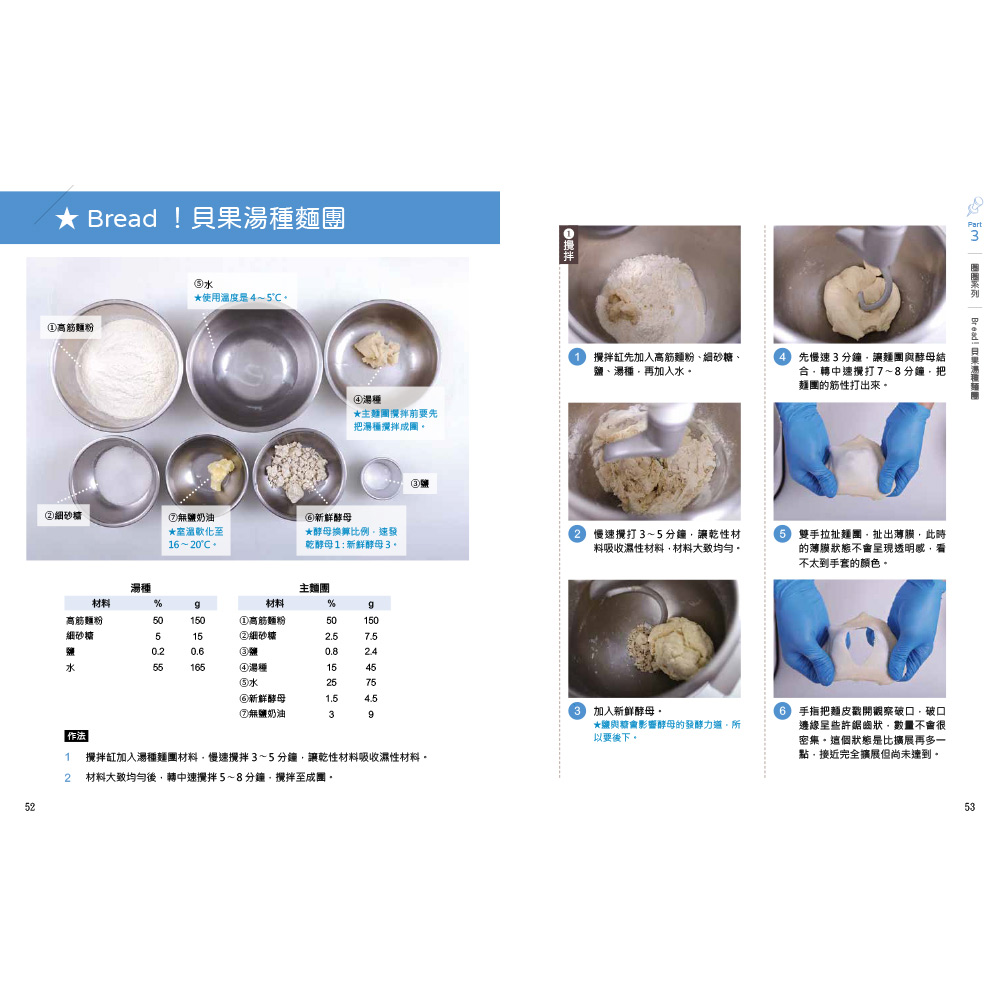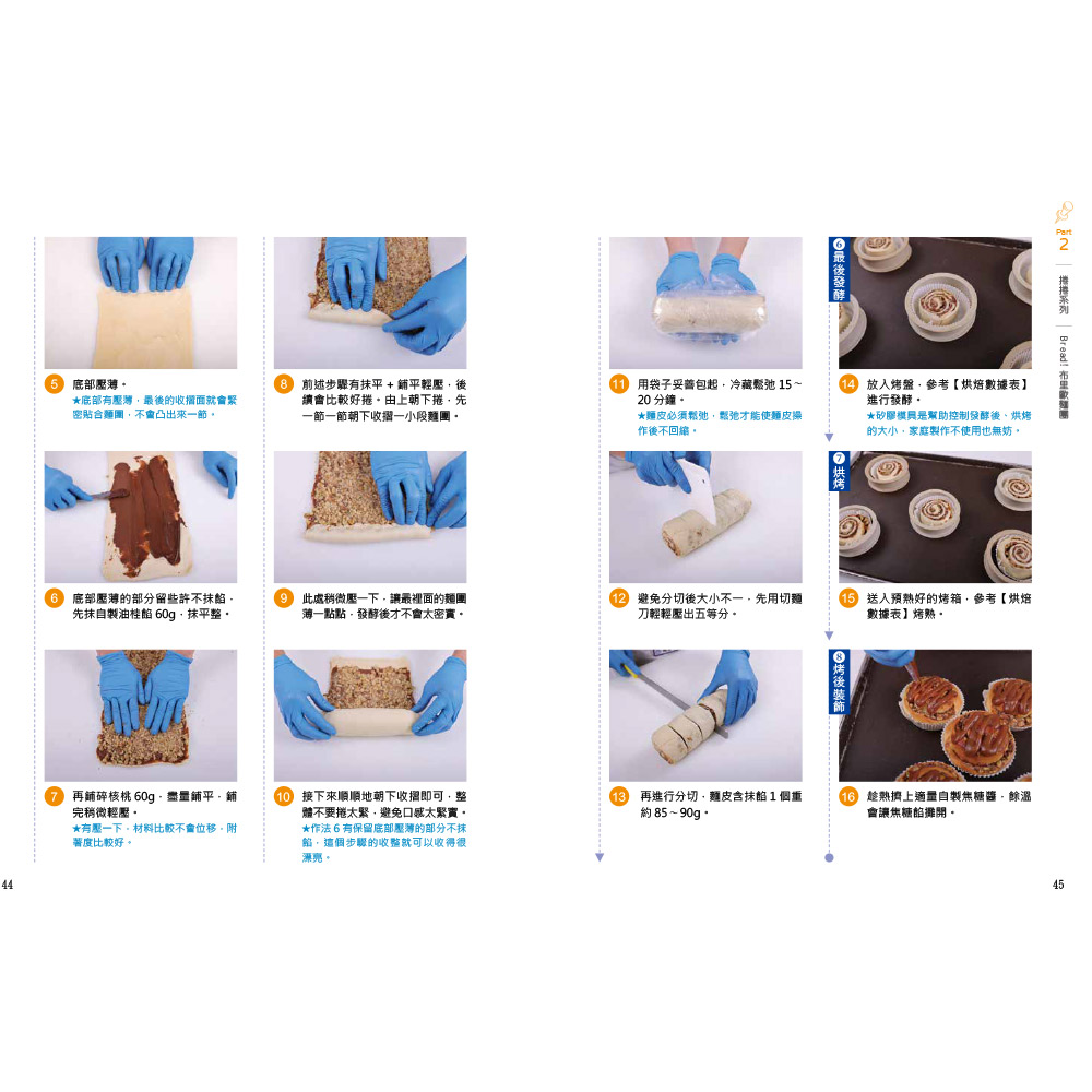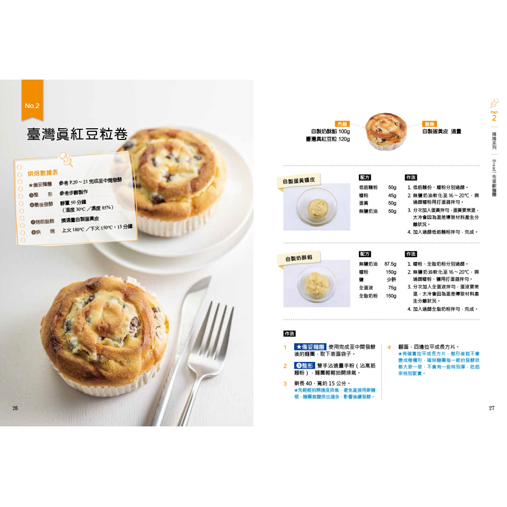 每一道產品特別整理「烘焙數據表」區分製作段落,