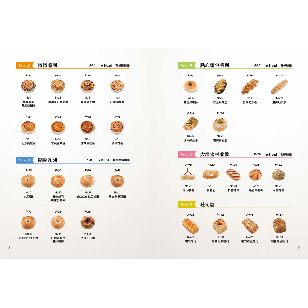 全書共6大單元,第1單元說明基礎,搭配5大主題系列麵包。