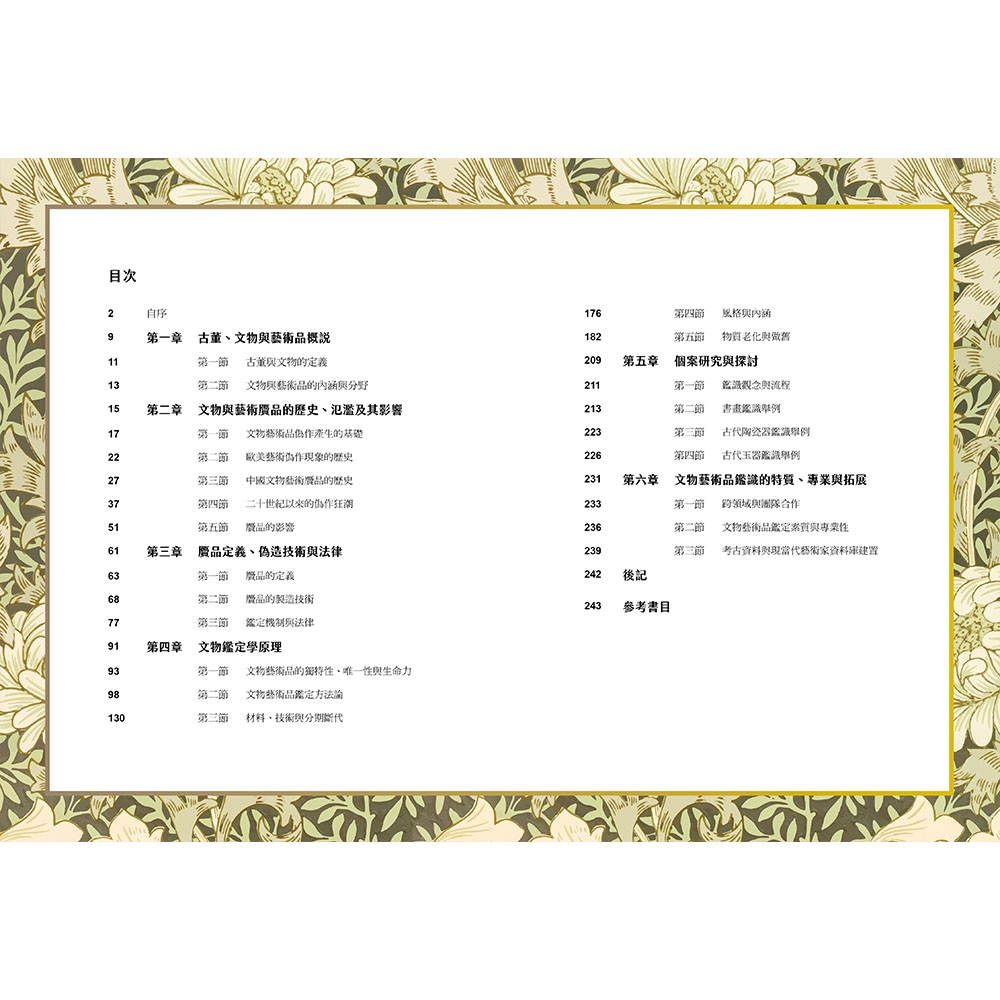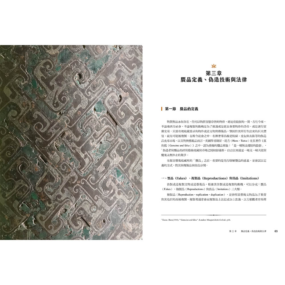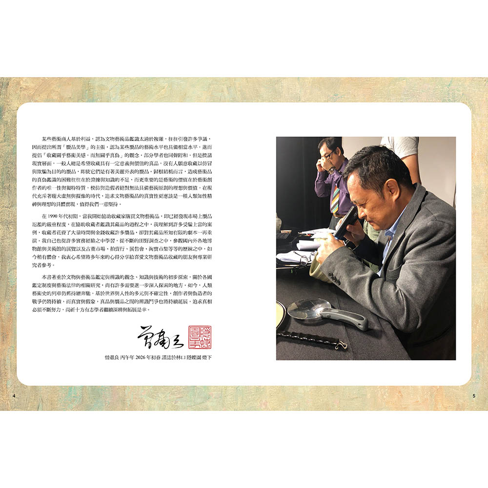 本書內容涵蓋藝術風格分析、材料與技術判讀、歷史文獻考證、市場機制的觀察,以及跨學科科學檢測方法之整合運用,嘗試建構一套兼具理論深度與實務可操作性的鑑識基礎。